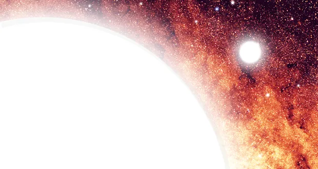 Figure 1: On the left is a very low mass white dwarf, and on the right is a companion star with a smaller radius and greater mass. Image source: CfA/David A. Aguilar