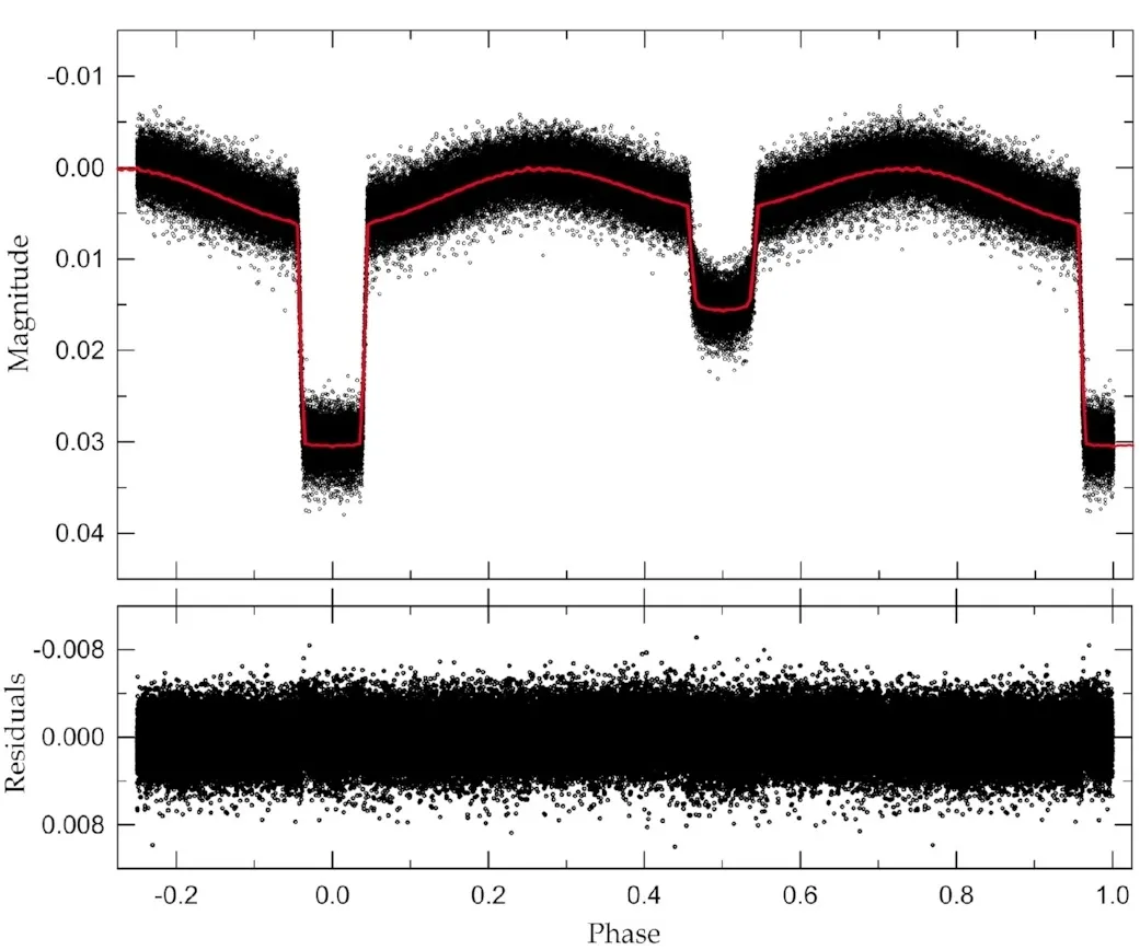 Figure 3: Phased light curve of EL CVn binary WASP1814+48. The primary minimum corresponds to ELM WDs with smaller radii but higher temperatures being completely obscured by larger companion stars, while the secondary minimum corresponds to smaller ELM WDs passing in front of larger companion stars. Image source: Lee et al.(2022)