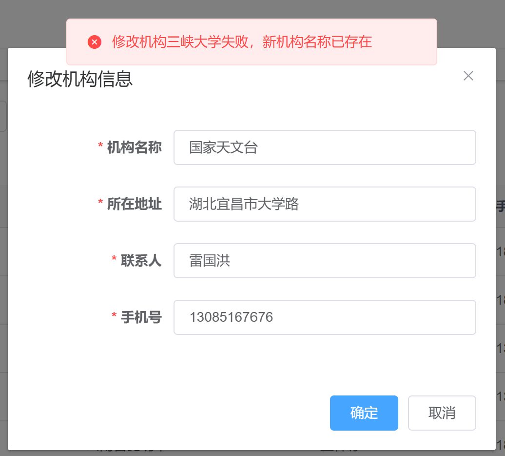 3 、若操作成功,则页面上方会弹出“微调属性操作成功”的提示,调整信息会在列表 中列出;若操作失败,页面上方会弹出相关错误提示,需要根据提示选择放弃微调操作或修 改后再次点击“确定”。