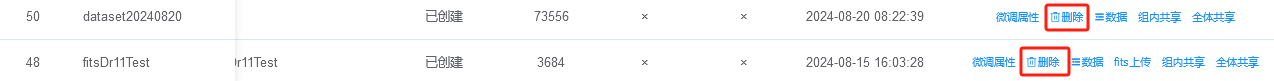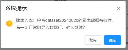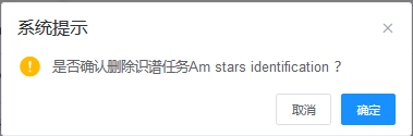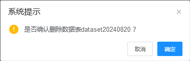 2、在弹出的系统提示对话框中,然后点击“确定”按钮,后台程序将会删除数据表、 csv 文件切片数据、fits 文件切片数据、数据表字段信息、数据表记录。