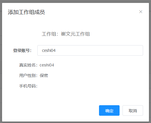 新注册用户未加入到任何工作组,因此点击头像进入“个人中心”,左侧的“工作组信 息”卡片没有内容。