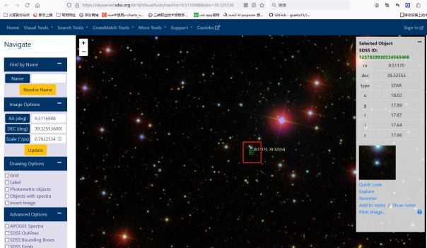 上图分别是光谱类别选择恒星和光谱类别选择类星体之后的不同界面。