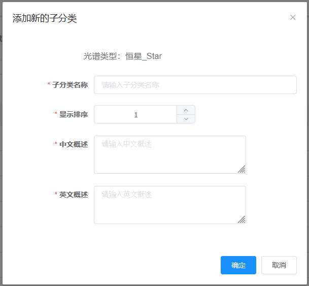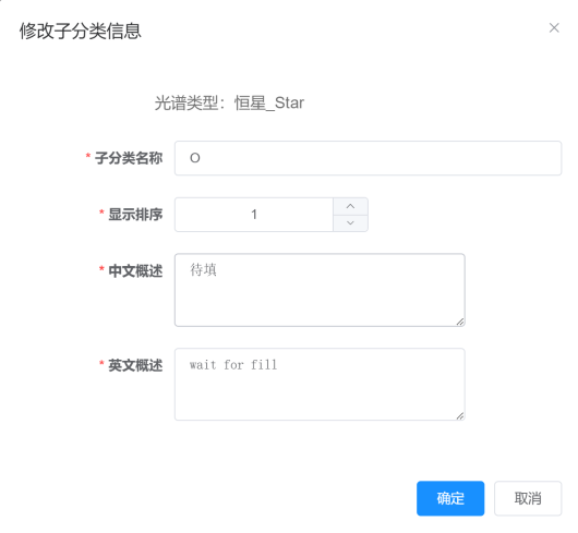 应用场景:系统上线前系统管理员登记各类型光谱所需要标注的物理参数名称。系统上 线后,某天文学家或天文教育工作者认为应该增加一些待标注的物理参数,提醒系统管理员。