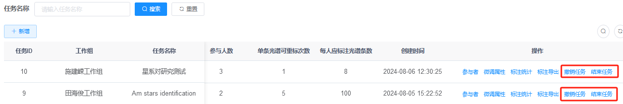 a . 组负责人在工作环境中,进入“首页/工作组/识谱任务布置”菜单。界面会列表显 示当前已布置的所有任务。找到相应的任务,在数据行右侧点击“撤销任务”超链接。