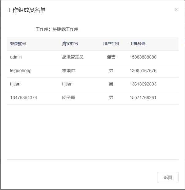 点击工作组名称(超链接),界面将弹出小窗口显示该工作组的人员名单。