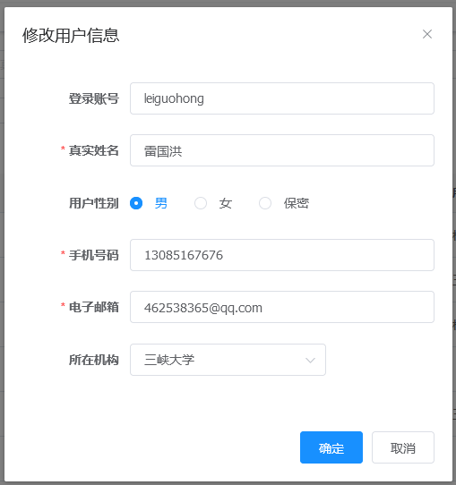 应用场景:用户查看个人信息发现未完善或有错误;真实姓名、电话号码、电子邮箱 和所在机构等发生变动;用户账号的所有者发生变动或使用权转移。