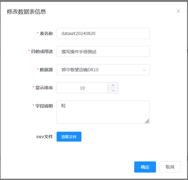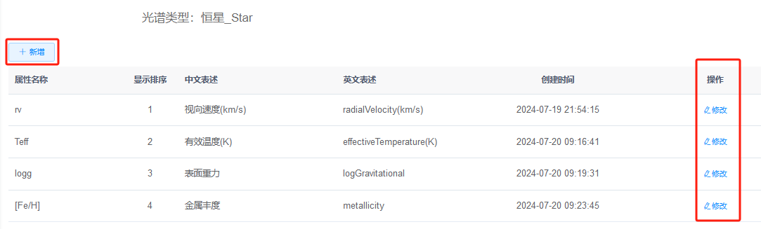 应用场景:用户新增了数据表记录,已执行了“建表入库”操作(不会再出现“修改” 按钮),但发现之前新增数据表记录时填写的星表数据描述属性有误。