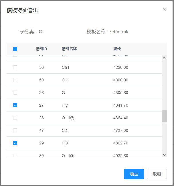 5 、可视化界面中选取模板,无法同时选取两套模板去分别匹配两条光谱。